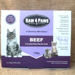 Raw 4 Paws Beef also contains beef heart which is a natural source of Taurine , an essential amino acid that cats need for healthy heart function.